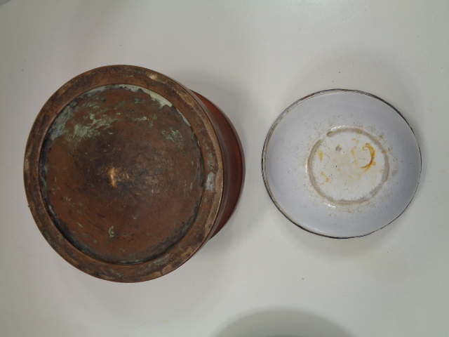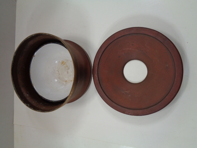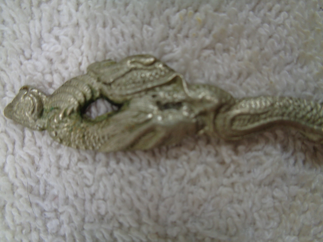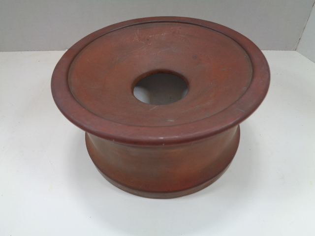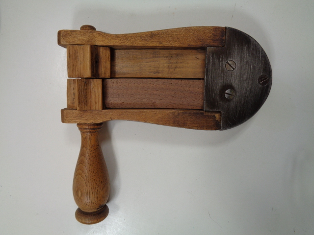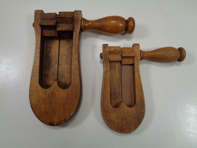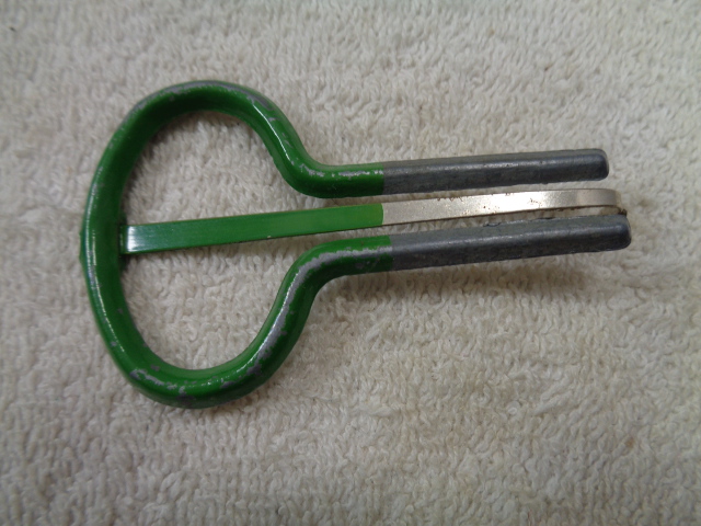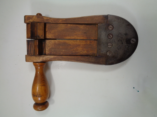 Have two of these Battle Rattles in different sizes and obviously made by the same manufacturer. The small one is 5 3/4: by 6" by 3/4" thick and has 3 screws holding the metal plate. The larger one is 7" by 8" by 1" thick and has 5 screws hold the metal plate. Both are in working condition and great looking pieces. They are sold at $150 each, or take the pair for $285.