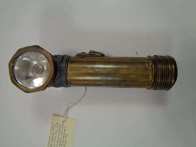 Great looking flashlight, nice patina to the brass case, not sure if it is operational, but so hard to find in this condition. Marked "Eveready" A National Carbon Company Product.