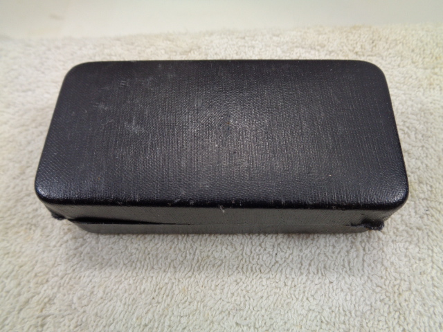 Nice aluminum case by, "B&L" with clear lenses and hinged at the nose to fit better. Overall nice shape.