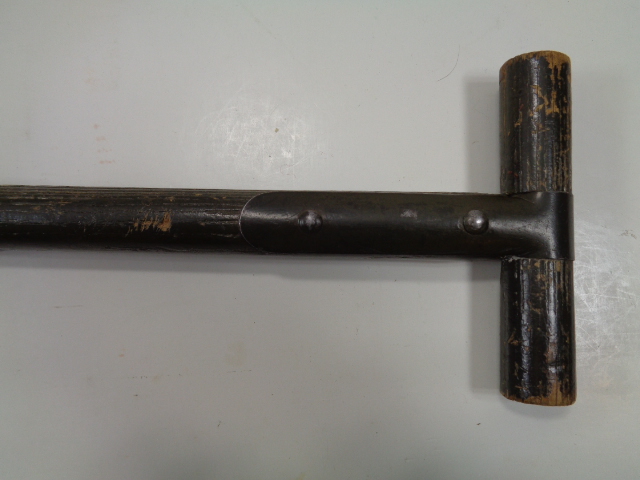 A near mint condition Pick-Mattock intrenching tool with cover. All are dated 1944, the handle and the tool are marked "Plumb". while the cover is dated 1944 by "W.L. Dumas Mfg. Co.". Won't find a better example.