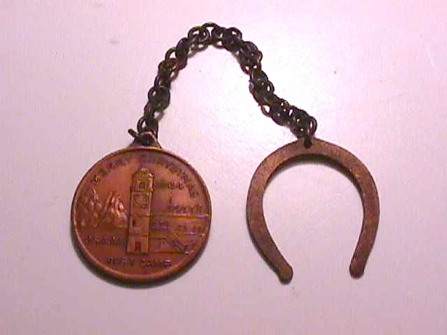 This is the first one of these I've ever encountered. It is 1" in diameter and has a horse shoe for good luck at the other end of the chain.. One side says, "Merry Christmas - USAAF Rest Camp - 1944" and the other side says, "Happy New Year - Capri - 1945". Another great good luck charm for those men of the 12th and 15th AAF.