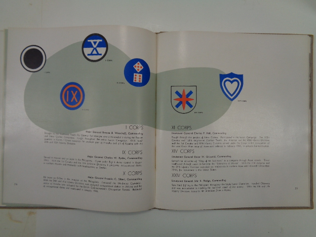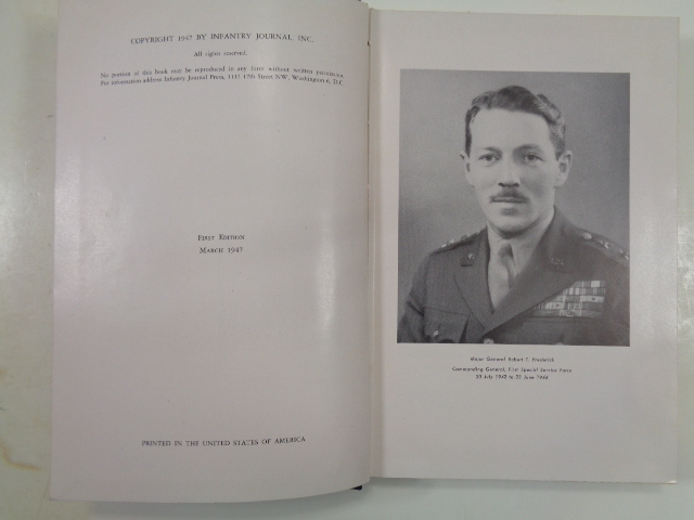 This is a First Edition 1947 by the "Washington Infantry Journal Press. A hardcover book of over 420 pages of text, photo's and Honor List and Valor Medal winners. The book had some moisture issues in the last 60 pages, but still very readable, paper just has some waves to them. Great reference book.