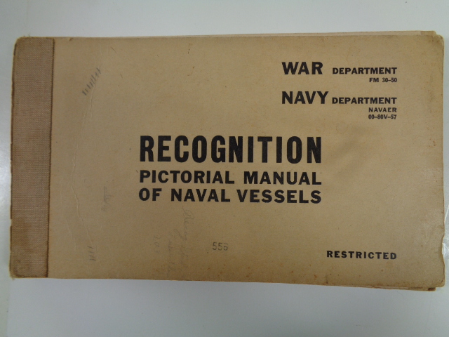 Here is a super book on Identification of Japanese Merchant and War Ships in 1941-42. The book is filled with over 100 pages of photographs, silhouette's and drawings of Japanese Shipping. This ID book has the original cover/box for these pages. If your into the Japanese Navy and Merchant Fleet, this is the reference book for you. The binding tape on the cover/box is torn in spots, but everything else is excellent.