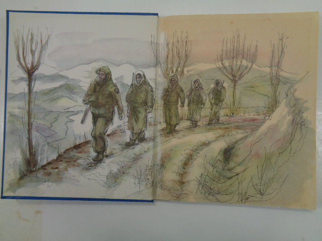 Great looking hard cover book, many pages filled with text and photo rosters and Camp photo's. This is at Camp Gordon, Ga. The book measures 11 1/2" by 9" bu 1 1/4" and has some weight to it. The front cover has a couple wrinkles at the top, but they do not affect the book's integrity, as the pages are not affected.