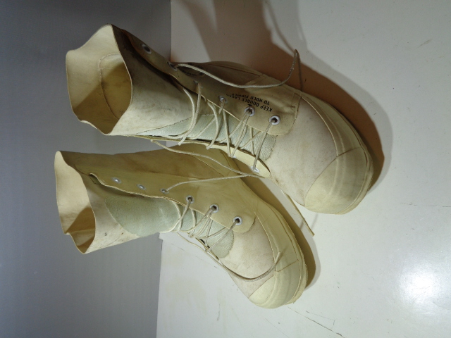 Have two pair of boots from the same veteran. They are dated 1988 and are a size 14. One pair is mint, never worn and still has the tag. The other pair has been worn, but are in excellent condition. The unworn pair is $75, the worn pair is $55, or buy both for $120.